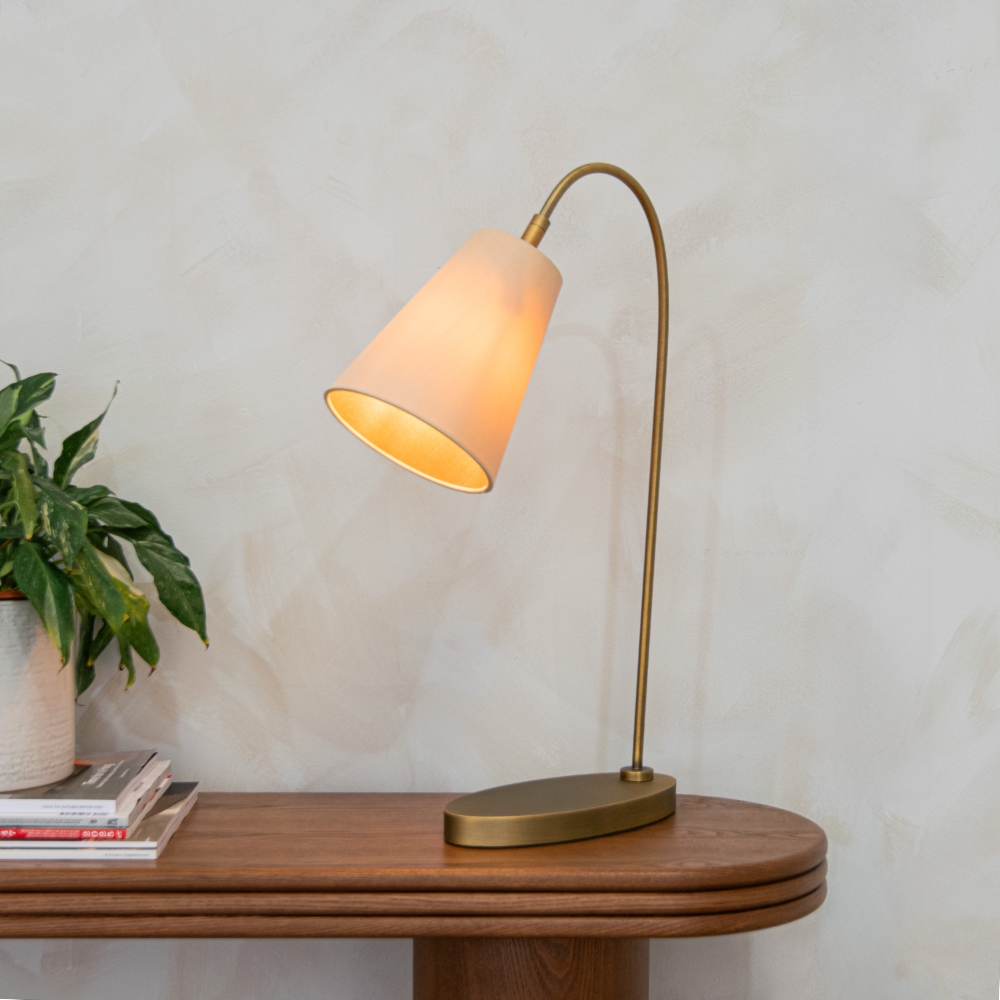 Add a sophisticated and stylish touch to any room with the Sile Marble Desk Lamp. This unique design showcases an exquisite black marble base that instantly elevates the décor, imparting a chic and timeless appeal. The elegant, thin antique brass stem seamlessly complements the base, while the soft latte shade adds an extra layer of refinement to the overall look. Perfect for modern interiors as well as professional office settings, this eye-catching desk lamp is not just a source of light but also a statement piece that brings character and charm to any area. Whether placed on a desk, side table, or bookshelf, the Sile Marble Desk Lamp promises to illuminate any surroundings with style and sophistication, making it a must-have accessory for any design-conscious individual.