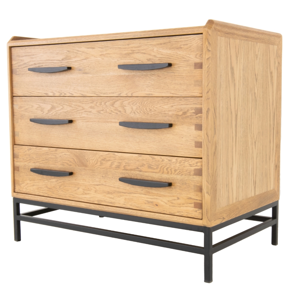 With its minimalistic Scandinavian-inspired style, the Brue One-Drawer Side Table mixes fine natural oak with a black oak accent, embodying an urban retro look that will suit any living room, sitting room or bedroom. Complete with a large single drawer for storage or organisation and a thick oak surface for a bedside light, photograph frames or ornaments.